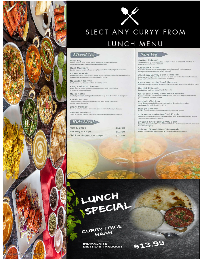 Welcome to Indian 2nite, an exquisite Indian restaurant nestled at 22 George Street, Palmerston North. This culinary gem captivates the senses with its vibrant dishes and inviting atmosphere. Their menu boasts an array of tantalizing options, with standout highlights including the Bhuna Chicken—tender chicken simmered in a rich gravy of onion, tomato, and cashew nuts, served alongside fragrant basmati rice. Meat lovers will relish the Lamb Tikka Masala and Beef Saagwala, each delivering layers of flavor that dance on the palate.